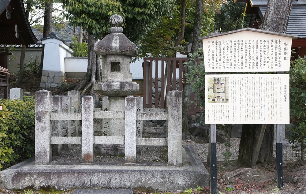 白河法皇が祇園女御のもとに赴こうとこの辺りを通った時に、前方に鬼のようなものが見えました。討伐を命じられた平忠盛は鬼の正体を見定めるために生け捕りにしたところ、灯籠に明かりを灯そうとしていた社僧でした。人々は忠盛の思慮深さと勇ましさを称え、この話は平家物語や日本外史にも記されております。