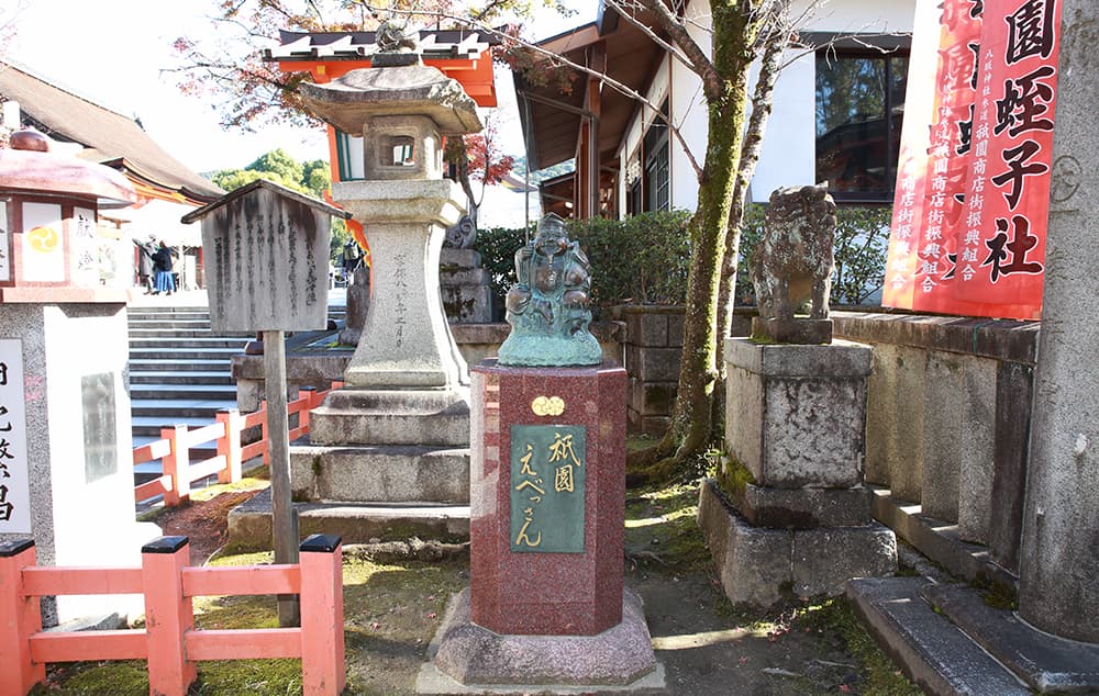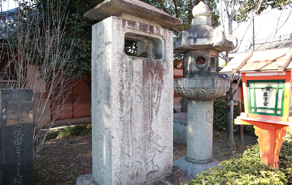 白河法皇が祇園女御のもとに赴こうとこの辺りを通った時に、前方に鬼のようなものが見えました。討伐を命じられた平忠盛は鬼の正体を見定めるために生け捕りにしたところ、灯籠に明かりを灯そうとしていた社僧でした。人々は忠盛の思慮深さと勇ましさを称え、この話は平家物語や日本外史にも記されております。
