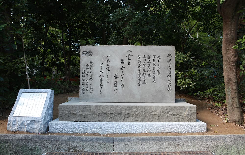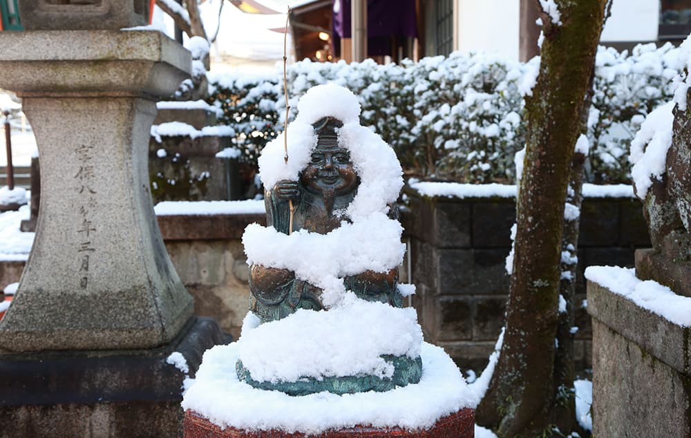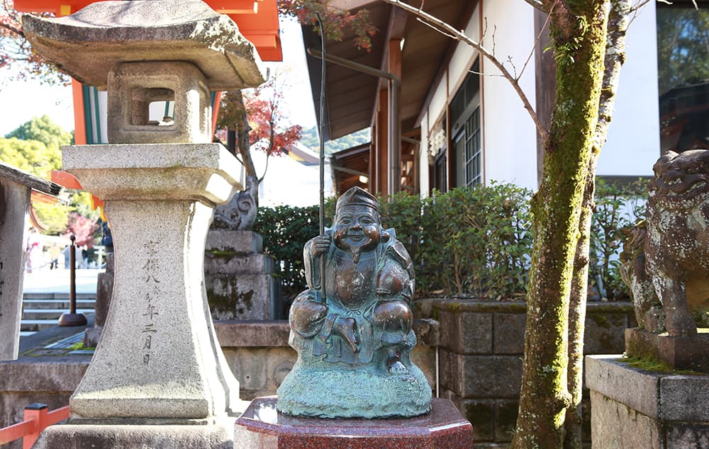 日本神話「因幡の白兎」で大国主社の御祭神であります大国主神がウサギを助ける場面を模した石像です。